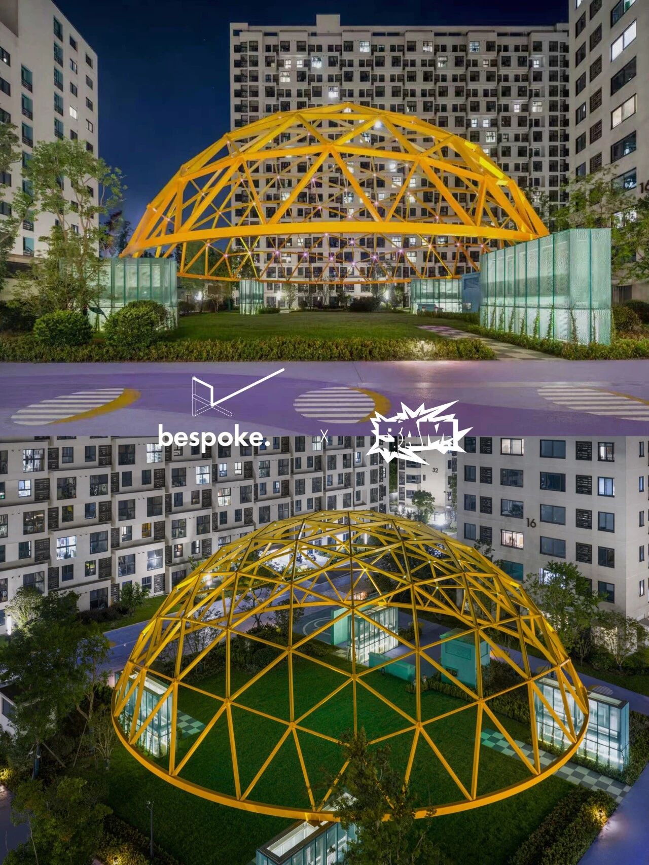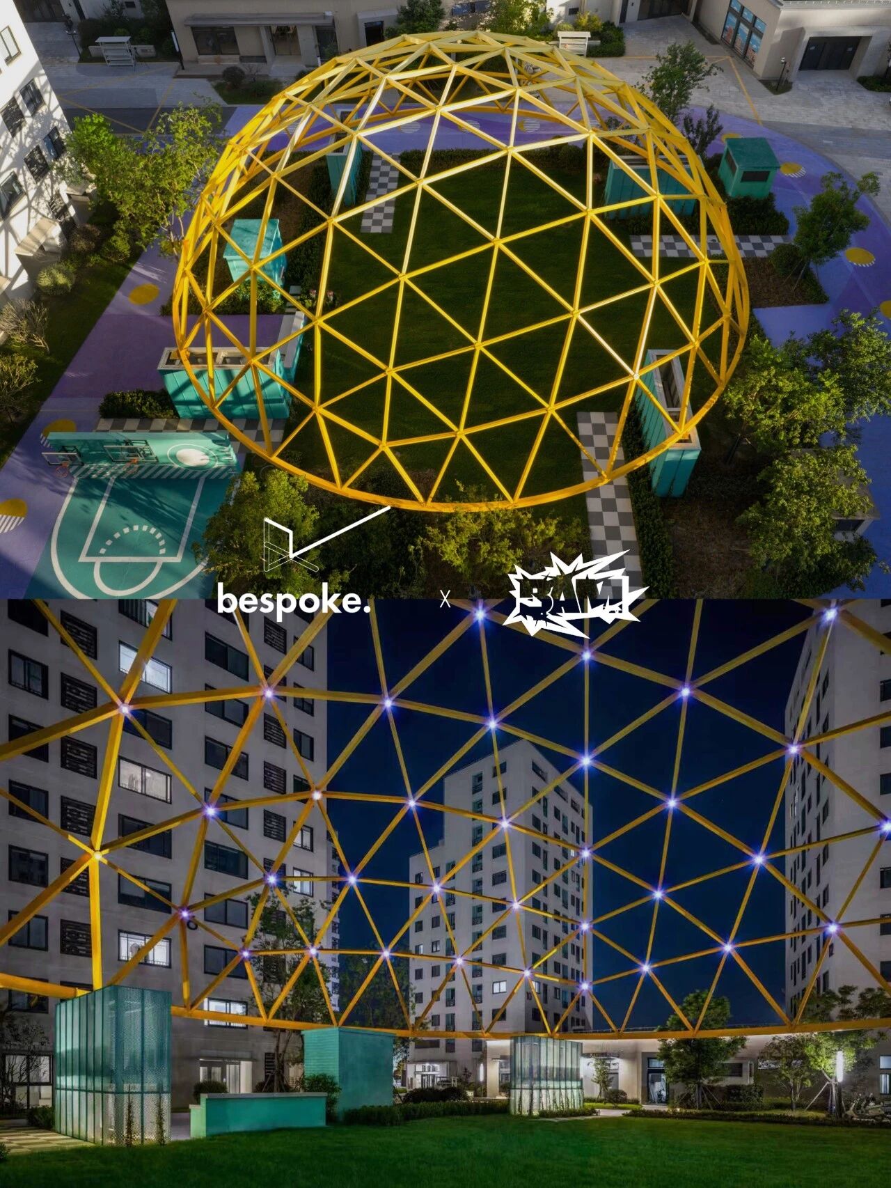 A new project with Ballistic Architecture Machine (BAM)The Zizhu Science Residential Park in Shanghai, designed by BAM百安木, weaves scientific logic with everyday landscape life. At its heart is the “Super Moon” — a 26-meter self-supporting geodesic dome that frames communal space and light under the lunar cycle.