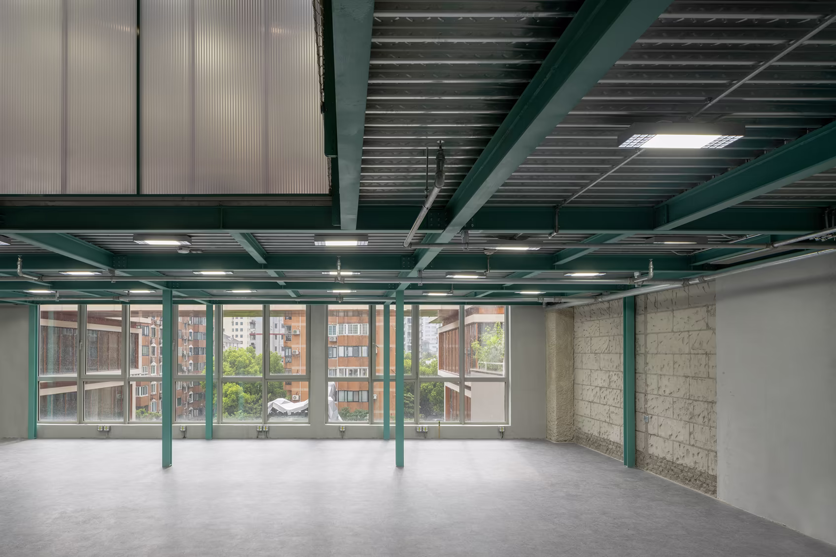 A signature staircase threading from the third floor to the rooftop serves as the spatial heart of the project: The third and fourth floors are seamlessly integrated, with the staircase serving as the central visual anchor, the structural framework is fully revealed within the space, celebrating its raw form without intentional concealment, Every joint and component is meticulously refined to ensure a rigorous alignment between structural logic and the brand’s identity.