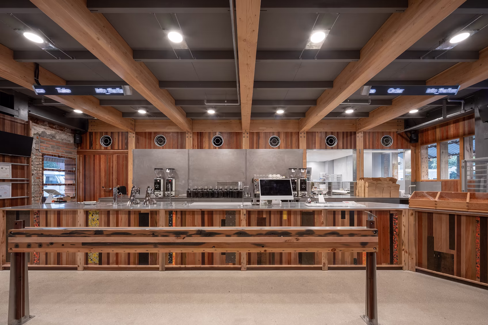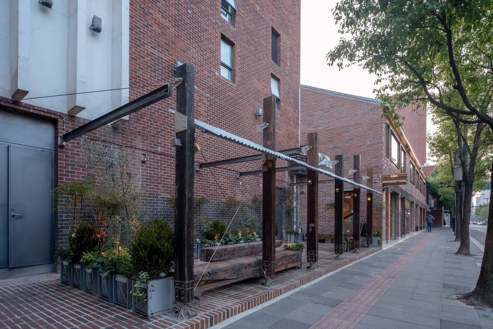 During the renovation, we paid close attention to the integration with the existing building. The old building features brick masonry and a steel frame. The internal steel frame from previous tenant has been assessed for structure safety to ensure it can bear the loads of the new suspended 2nd floor. The existing façade of the old building was in very bad shape, and the old brick wall could not accommodate the new façade design.